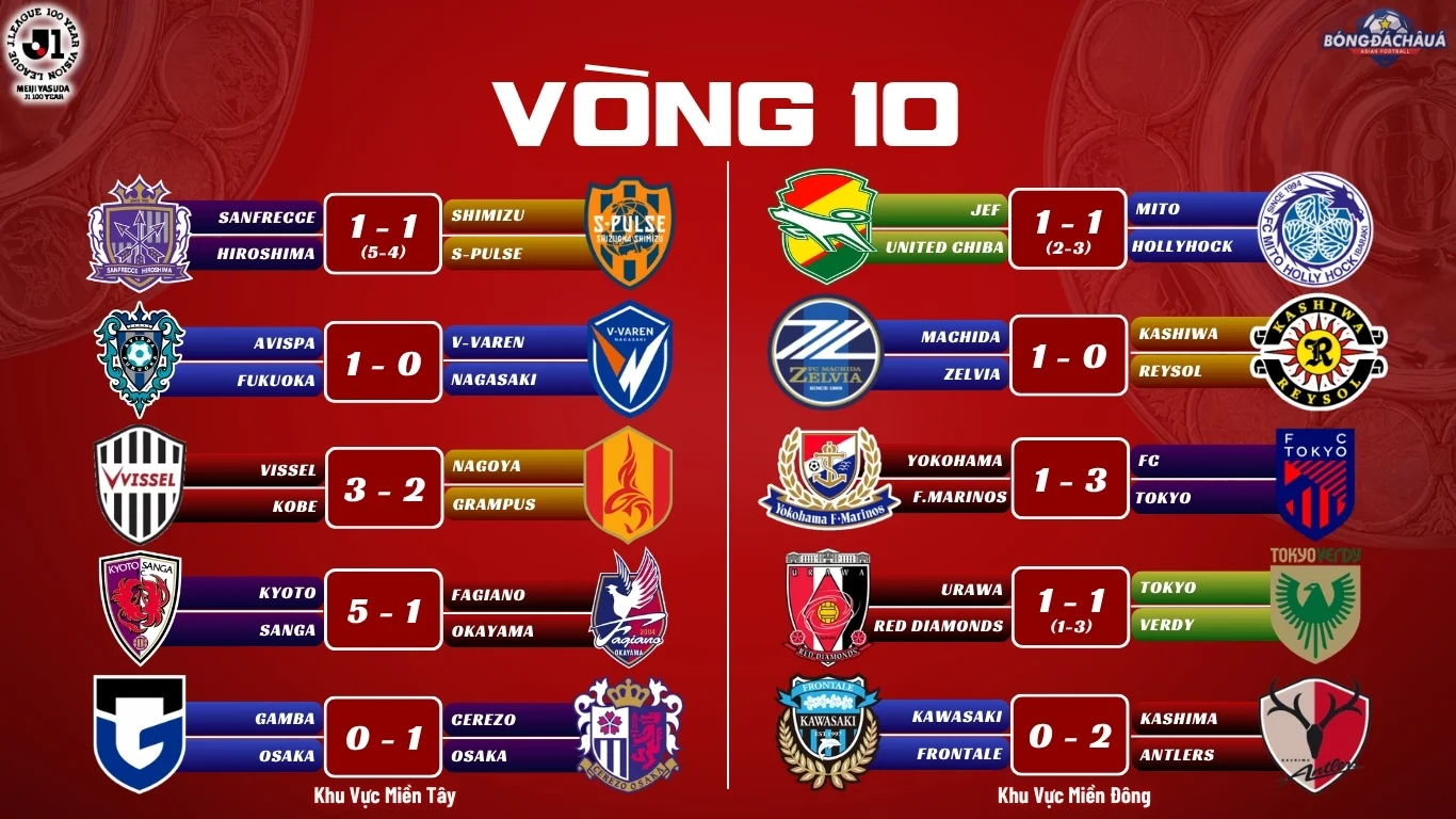Ở chiều ngược lại, khu vực miền Đông cũng chứng kiến kịch bản tương tự. Kashima Antlers và FC Tokyo tiếp tục thể hiện phong độ ổn định khi giành chiến thắng, qua đó giữ vững vị trí trong nhóm dẫn đầu.
