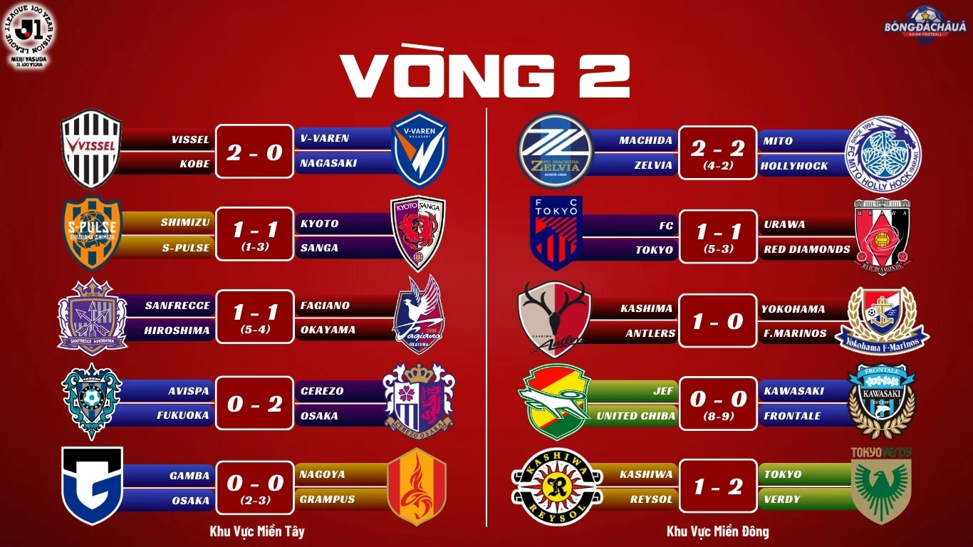 Vòng 2 J1 League 2026 đã sớm cho thấy sức nóng và tính cạnh tranh khốc liệt của mùa giải mới. Ngay từ vòng đấu thứ hai, sự hấp dẫn đã được đẩy lên cao khi có tới 6/10 trận phải phân định thắng thua bằng loạt sút luân lưu, minh chứng rõ nét cho sự cân bằng giữa các đội bóng trong giai đoạn đầu mùa.