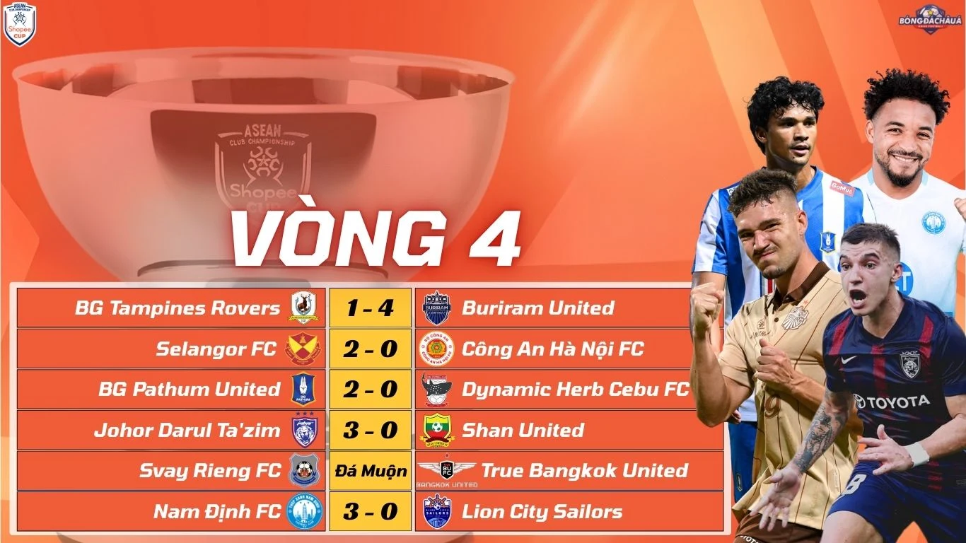 Ở bảng B, Nam Định FC thể hiện sức mạnh vượt trội khi đánh bại Lion City Sailors 3 bàn không gỡ, sớm giành quyền đi tiếp vào bán kết. Lượt đấu thứ 4 này đã làm thay đổi đáng kể cục diện tại các bảng đấu, hứa hẹn lượt trận cuối đầy kịch tính của Shopee Cup 2025/26.