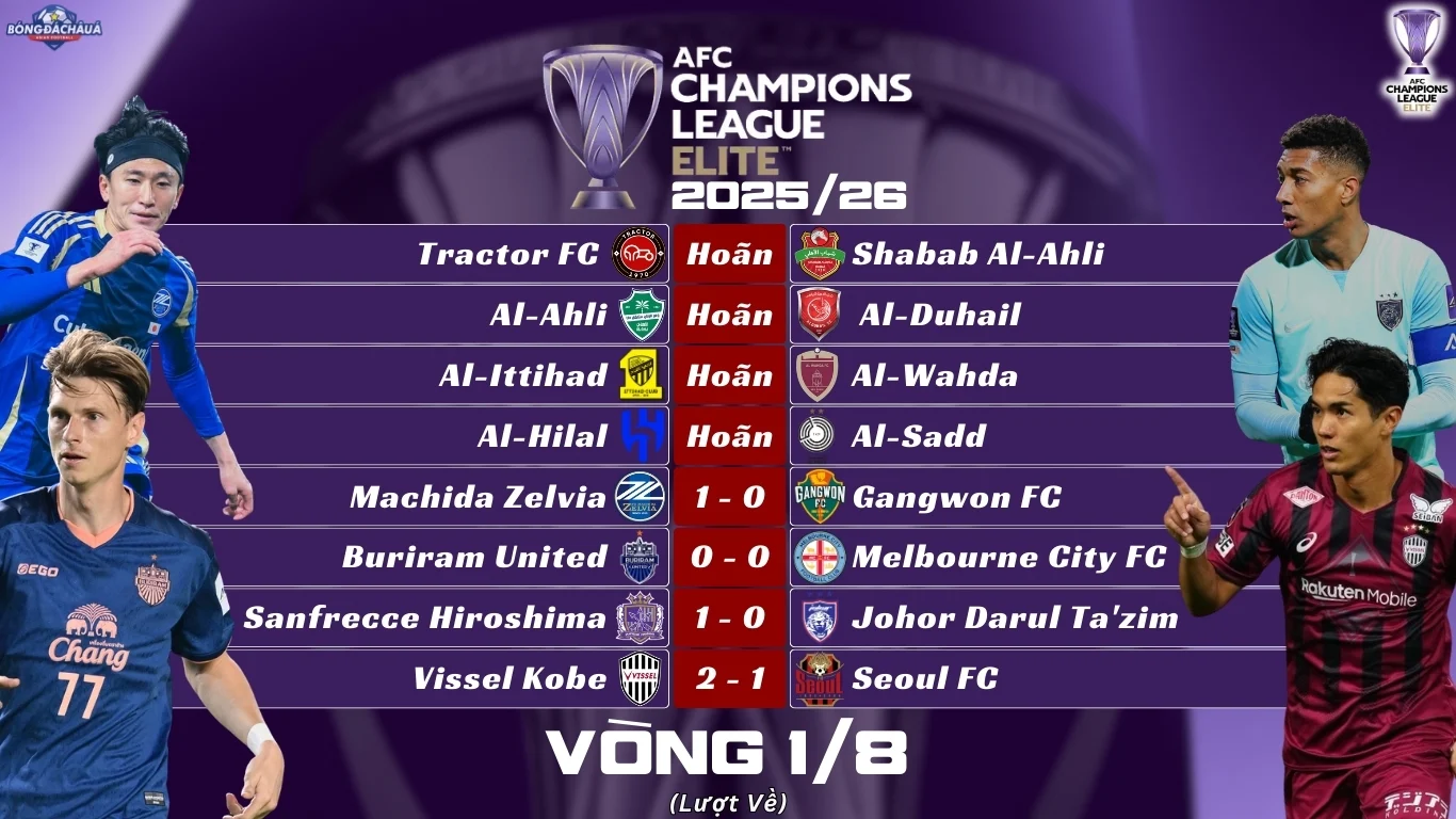 Trong khi các trận đấu tại khu vực Tây Á của AFC Champions League Elite tiếp tục bị hoãn, loạt trận lượt về vòng 16 đội khu vực Đông Á đã diễn ra với nhiều kết quả đáng chú ý và bất ngờ. Những cuộc đối đầu căng thẳng đã xác định các tấm vé vào vòng tứ kết của giải đấu.