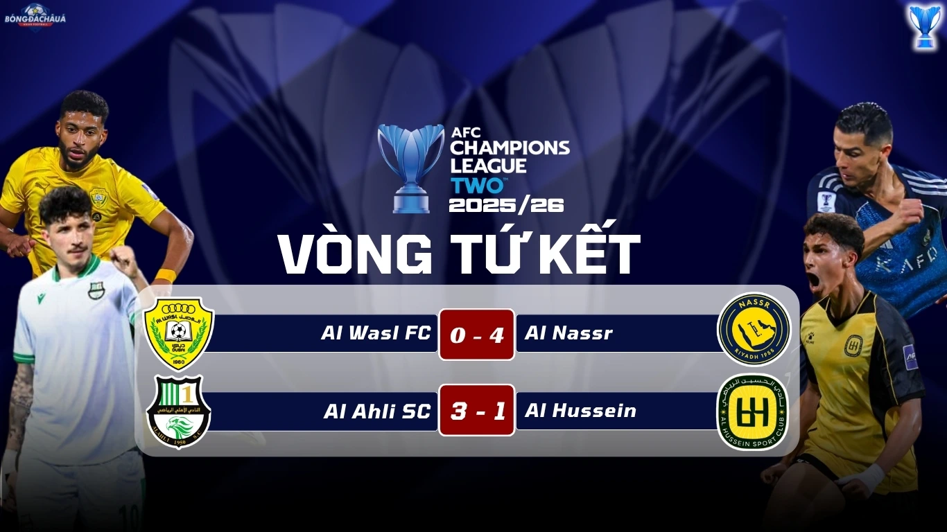 Ở trận đấu còn lại của vòng tứ kết AFC Champions League Two 2025/26 khu vực miền Tây, Al-Ahli SC giành chiến thắng 3-1 trước Al-Hussein SC, qua đó giành được tấm vé vào vòng bán kết, đối mặt với Al Nassr.
