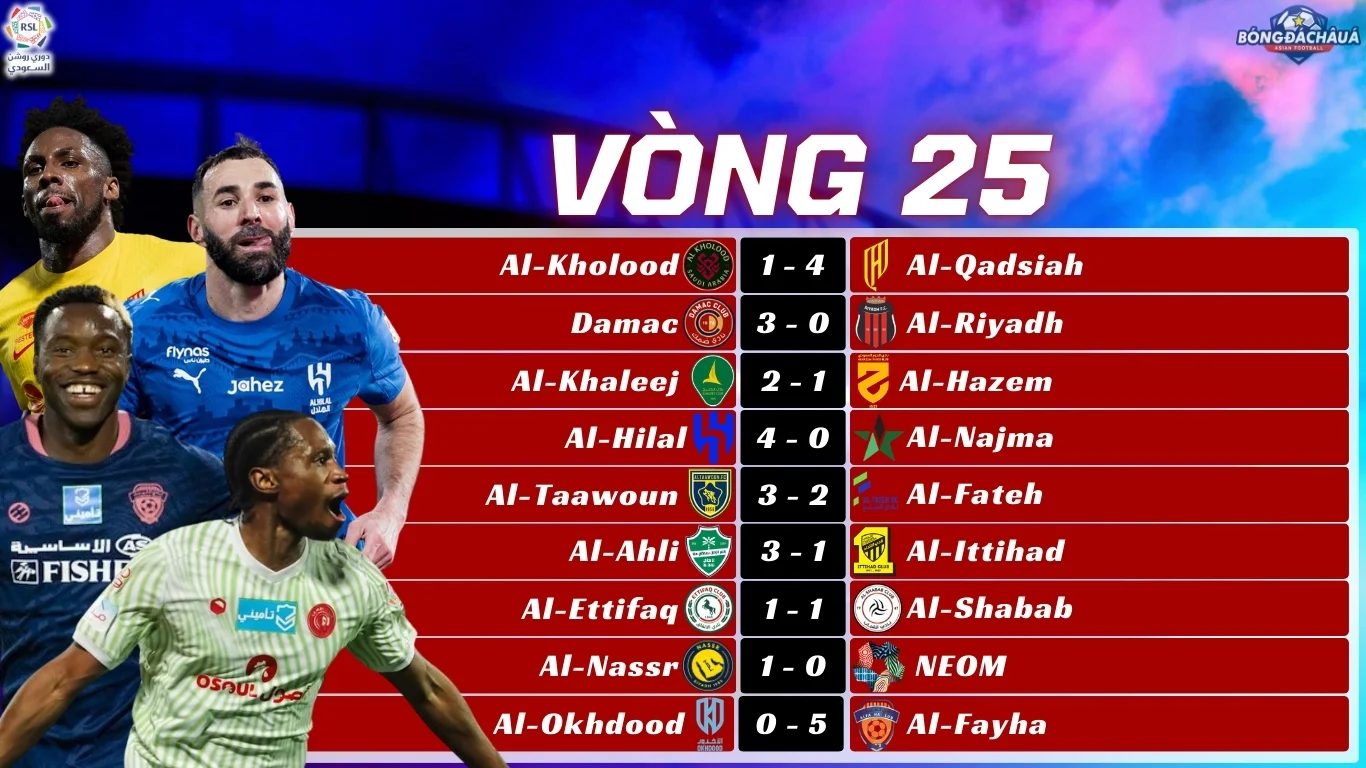 Tương tự như vòng đấu trước, vòng 25 tiếp tục chứng kiến sự áp đảo của các đội bóng được đánh giá cao hơn. Những ứng viên hàng đầu như Al Qadsiah, Al Hilal, Al Nassr và Al Ahli đều giành trọn 3 điểm sau các màn trình diễn thuyết phục. Kết quả này khiến cục diện cuộc đua vô địch gần như không có nhiều xáo trộn, khi các đội trong nhóm dẫn đầu vẫn duy trì khoảng cách sít sao trên bảng xếp hạng.