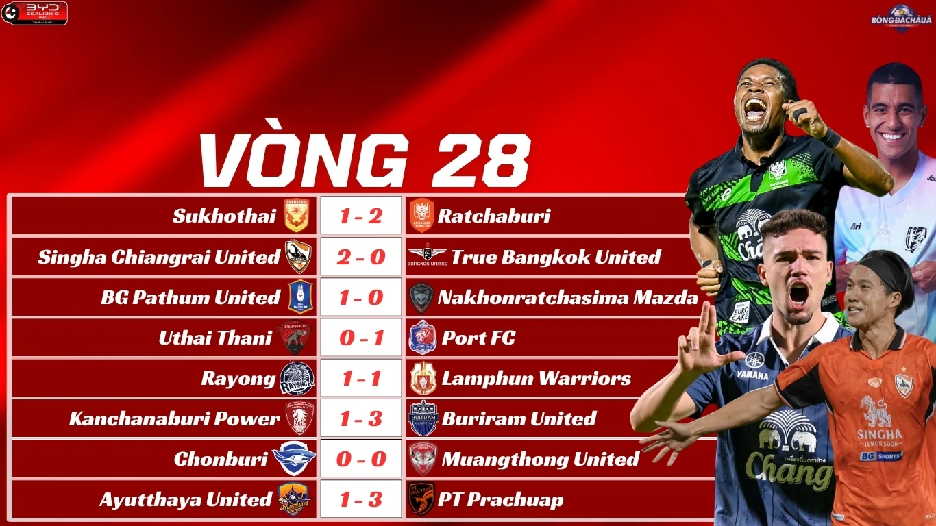 Ở các trận đấu khác của vòng 28 Thai League 2025/26, cả BG Pathum United và Port FC đều giành được chiến thắng tối thiểu 1-0 khi đối đầu với Nakhonratchasima Mazda FC và Uthai Thani FC.