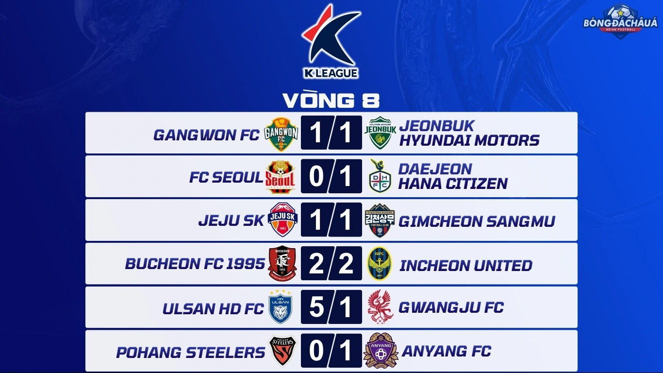 Kết Quả Vòng 8 K League 2026
