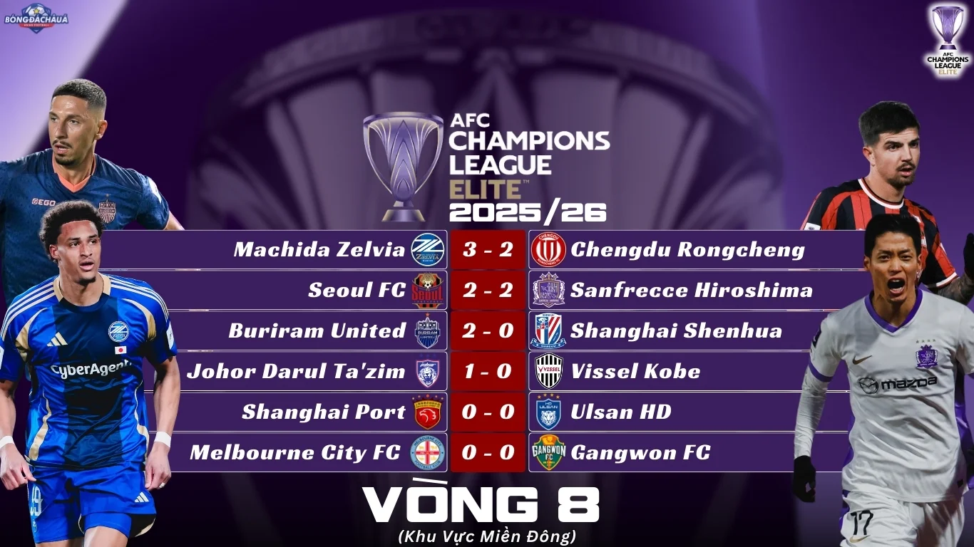 Kết Quả Lượt Trận Thứ Tám Vòng Bảng AFC Champions League Elite 2025/26 Khu Vực Miền Đông