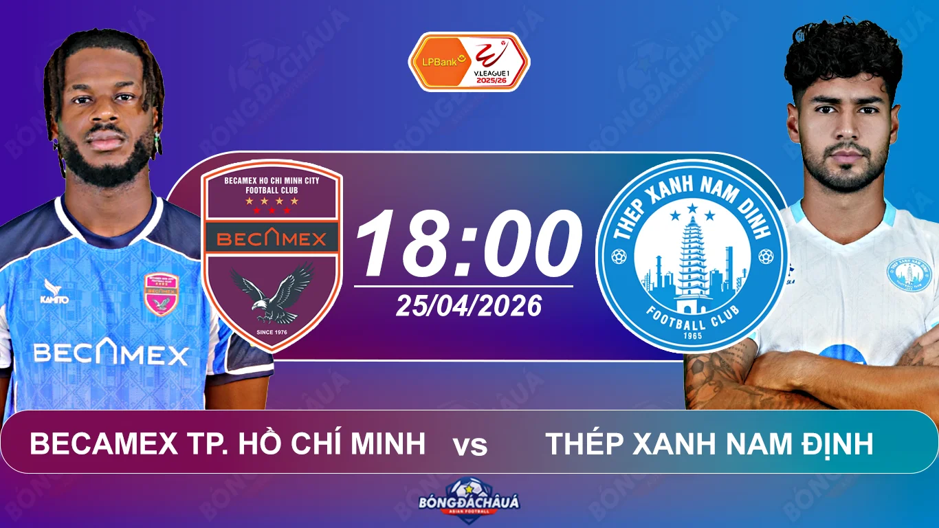Becamex TP. Hồ Chí Minh đối đầu Thép Xanh Nam Định, 18h00 ngày 25042026
