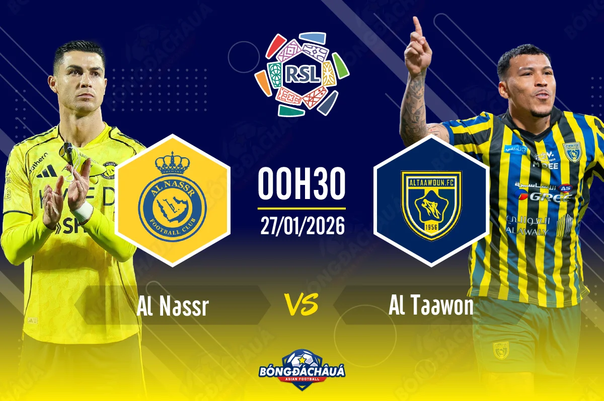 - Trận gần nhất, Al Nassr giành chiến thắng 2-1 trước Damac. Về phía Al Taawon, họ bị cầm hòa 2-2 trước Al Hazem.