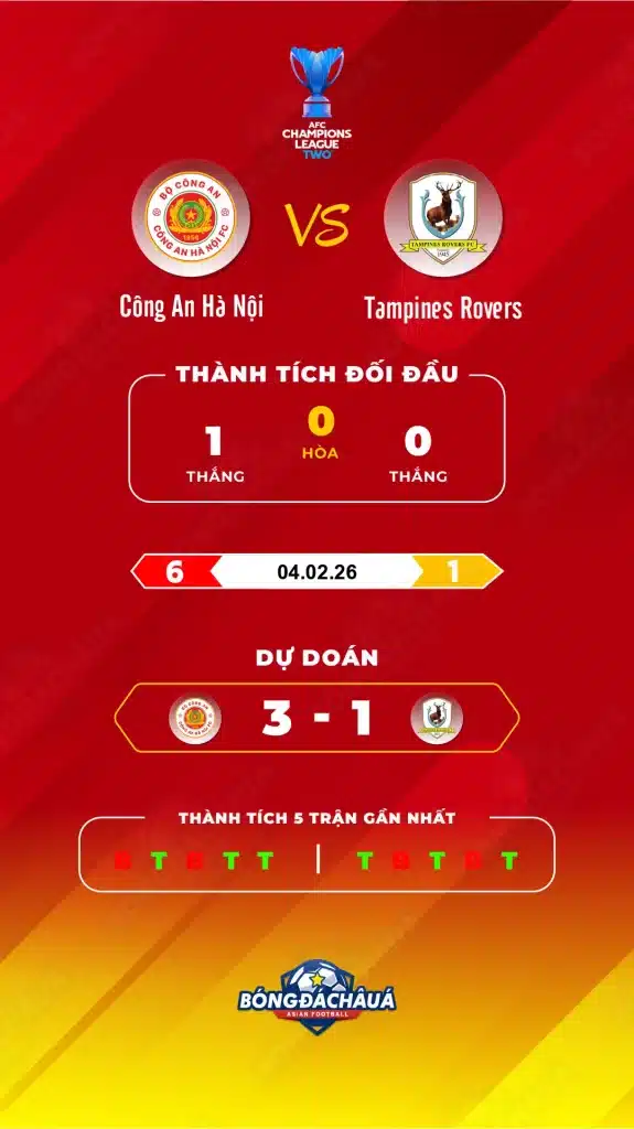Dự đoán từ bongdachaua.com Trận đấu giữa Công An Hà Nội và Tampines Rovers🛡️