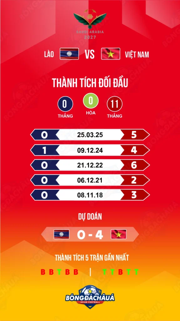 Sự tương phản về nhịp phát triển giữa hai đội đang được thể hiện rõ rệt khi Việt Nam có phong độ ổn định, còn Lào vẫn loay hoay trước sức ép từ các đối thủ mạnh. Khoảng cách về chất lượng nhân sự, nhất là sự trở lại của Xuân Son, kinh nghiệm và khả năng duy trì cự ly đội hình khiến cuộc đối đầu này dễ rơi vào thế trận một chiều. Dù Lào đã có những điều chỉnh chiến thuật, họ khó đứng vững trước nhịp pressing liên tục mà Việt Nam tạo ra. Với đà thăng hoa cùng chiều sâu đội hình vượt trội, dự đoán từ bóng đá châu Á tiếp tục nghiêng mạnh về ưu thế của Việt Nam.