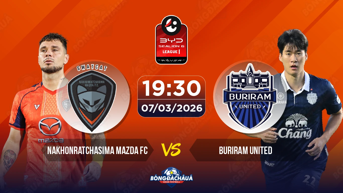 - Theo thống kê 5 trận gần nhất, Nakhonratchasima Mazda FC đang trượt dài trong khủng hoảng khi để thua tới 4 trận. Trái lại, Buriram United tiếp tục cho thấy sức mạnh đáng nể bằng chuỗi 7 trận bất bại.